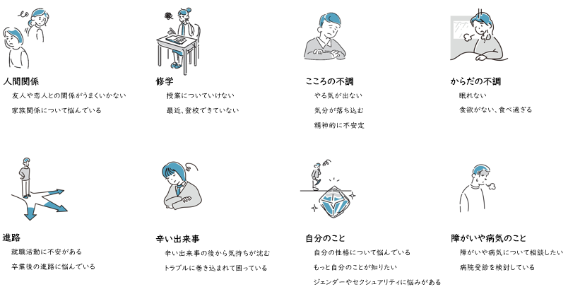 ※その他、心理検査の実施、学内外の適切な相談先紹介など行います。 まずはどんなことでもご相談ください。