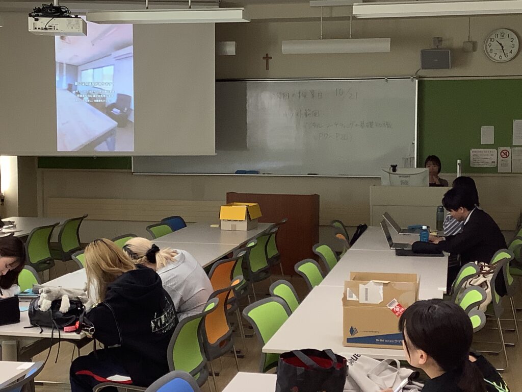 9月16日に実施した辰野町での動画撮影を踏まえ、学生13名(情報コミュニケーション学科、国際コミュニケーション科)がInstagramリール動画を制作しました。そして、9月30日の授業に、地域おこし協力隊の廣田さん、長谷川さん、合田さんをお招きし、成果発表会を開催しました。