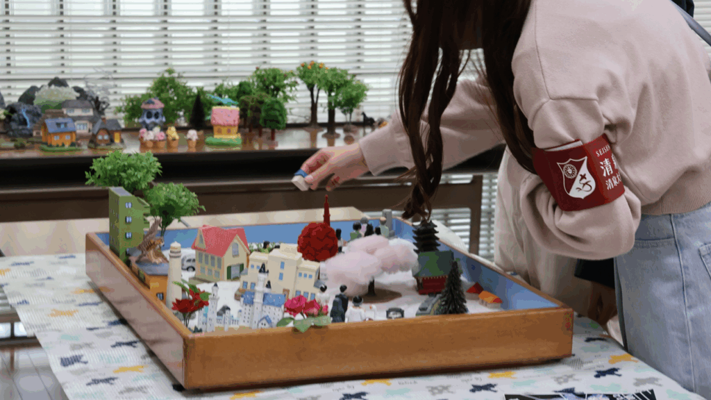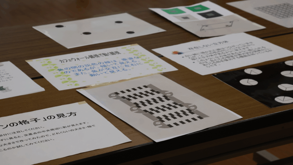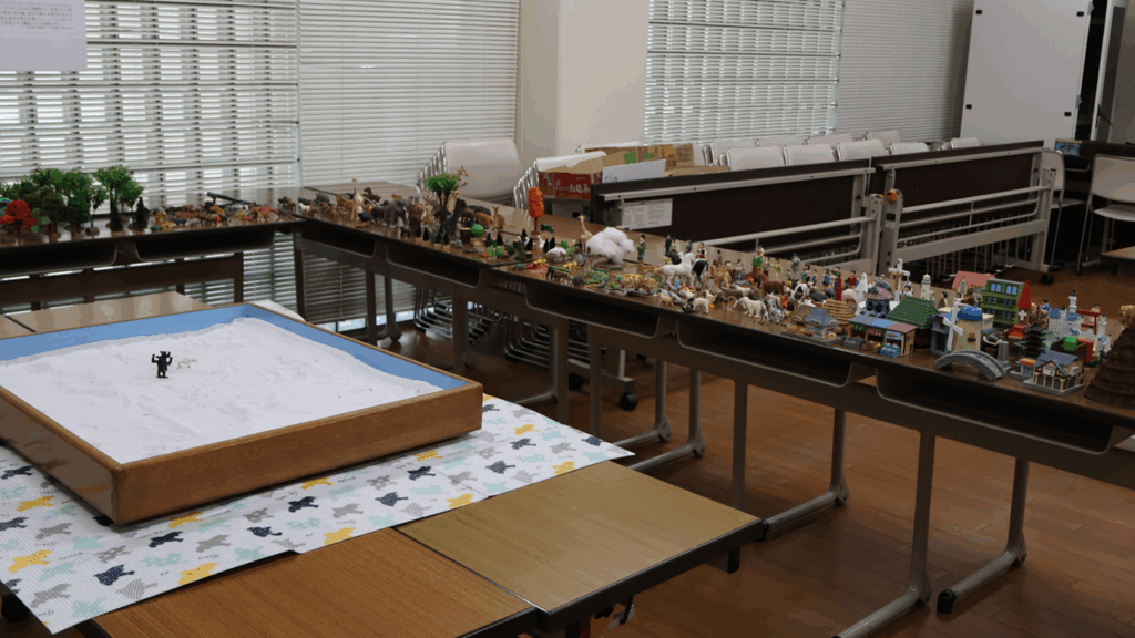 『心理学の部屋』では、心理支援で使われることが多い箱庭療法の用具や、人間の認知や知覚の実験で用いる器具などを展示し、実際に体験する企画を行いました。認知の実験を体験した方々は「難しかったけど、とても面白かった」という感想をおっしゃっていました。