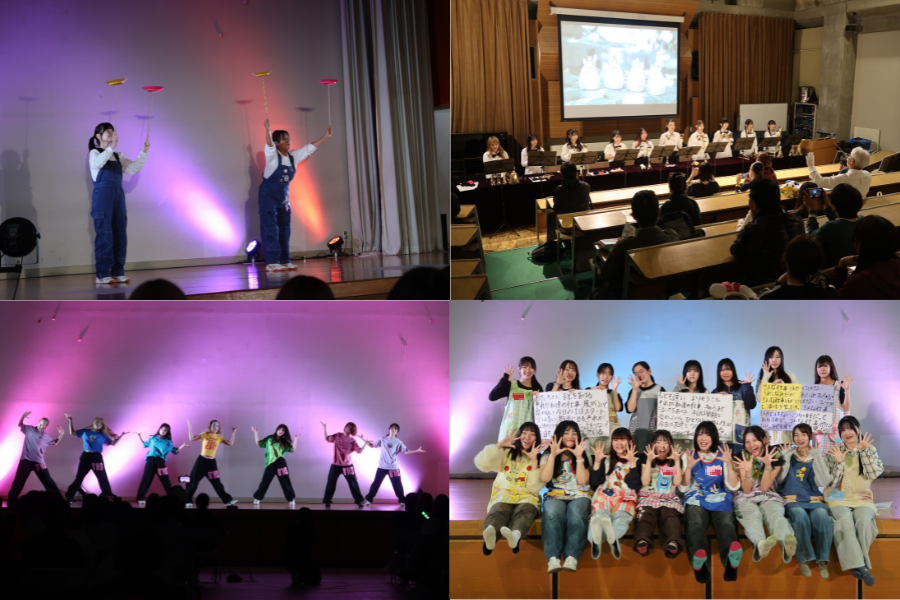 2年生の卒業研究の各セミナー(パフォーマンス、音楽表現、身体表現)による発表や、1年生の有志によるダンスや合唱の発表、模擬店、サークル「ひょうしぎの会」による紙しばいの実演など、それぞれが準備や練習を重ねた成果を発揮し、とても充実した内容となりました!