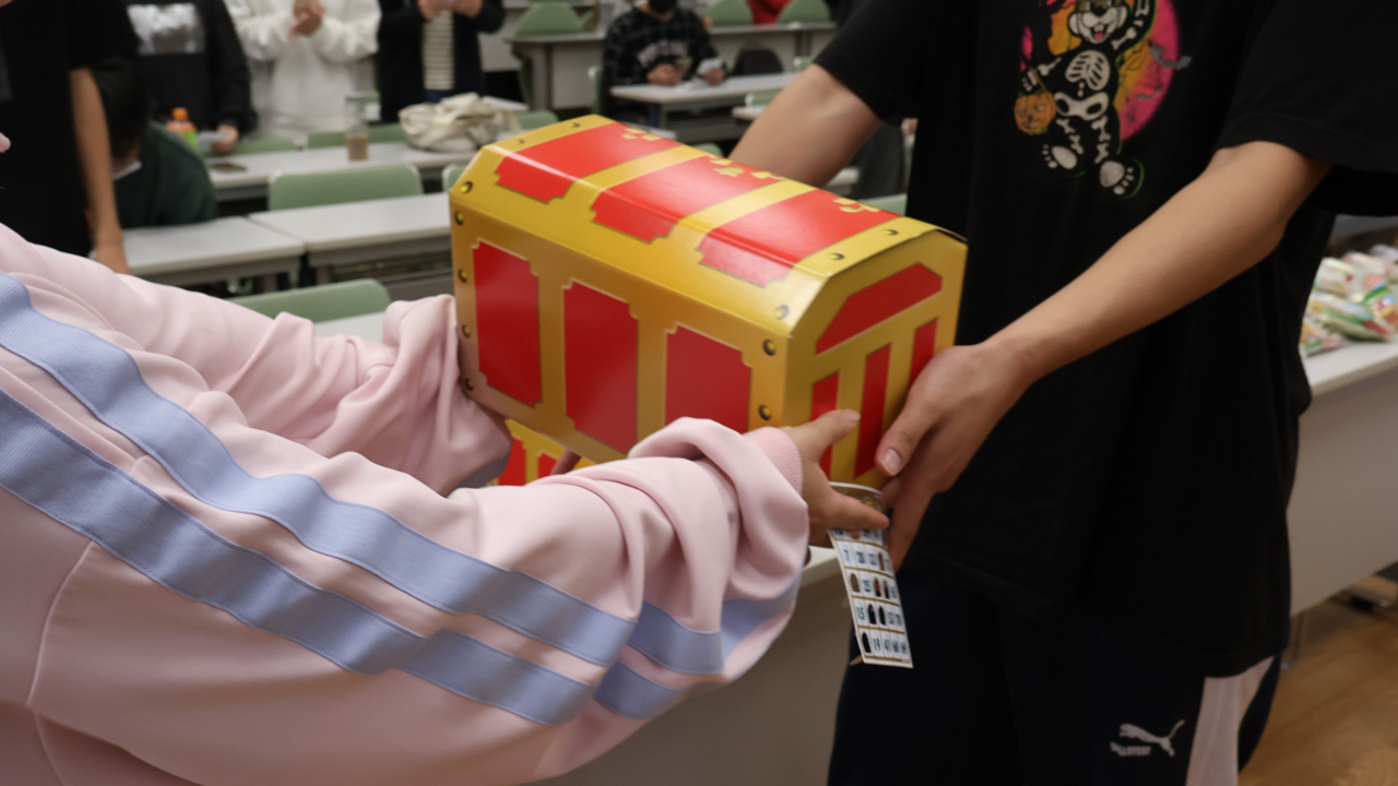 最後に、上位5名には宝箱に入ったお菓子の詰め合わせ等を景品としたビンゴ大会を行いました。