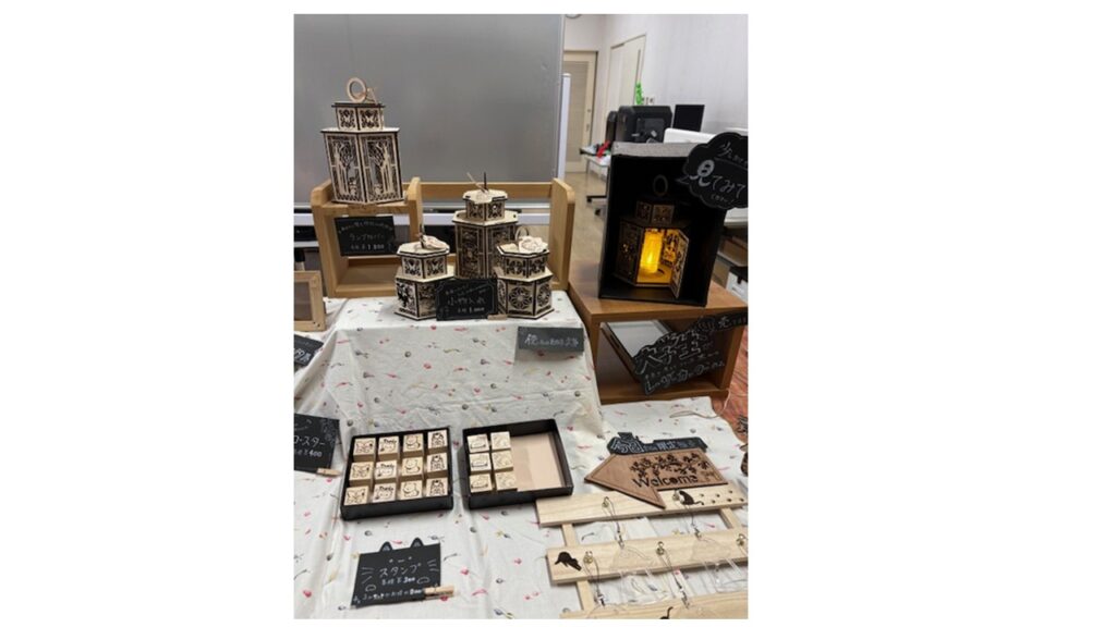 「こもれび」では、文化芸術学科が所有するレーザカッター機を使ってランタン、キーホルダー、スタンプなど製作し、
