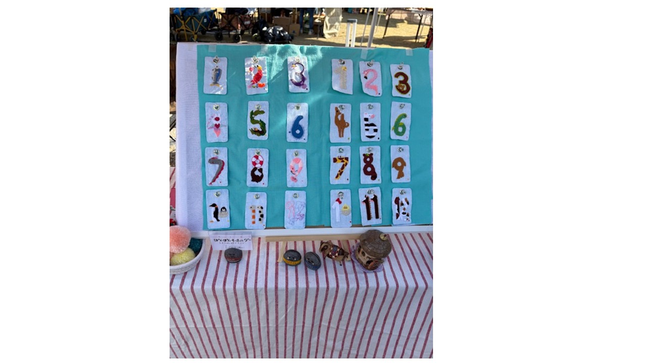 「ことりのいと」では手刺繍の万年カレンダーやキーホルダーなどと作って販売しました。