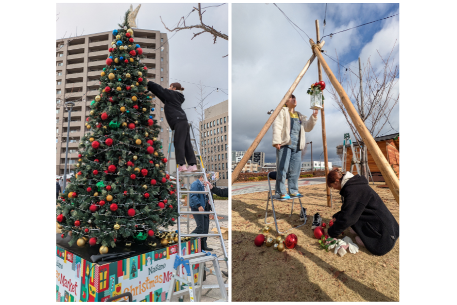 12/12(金)から長野駅東口公園で開催される『長野クリスマスマーケット2025』の会場装飾をお手伝いさせていただきました!