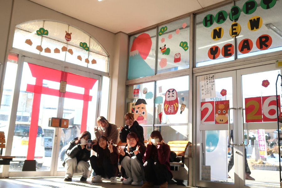 幼児教育科の専門科目「保育方法の研究Ⅴ」では、三才駅利用促進協議会《三才駅かわいい化プロジェクト》の一環として、駅舎内の装飾をしています。