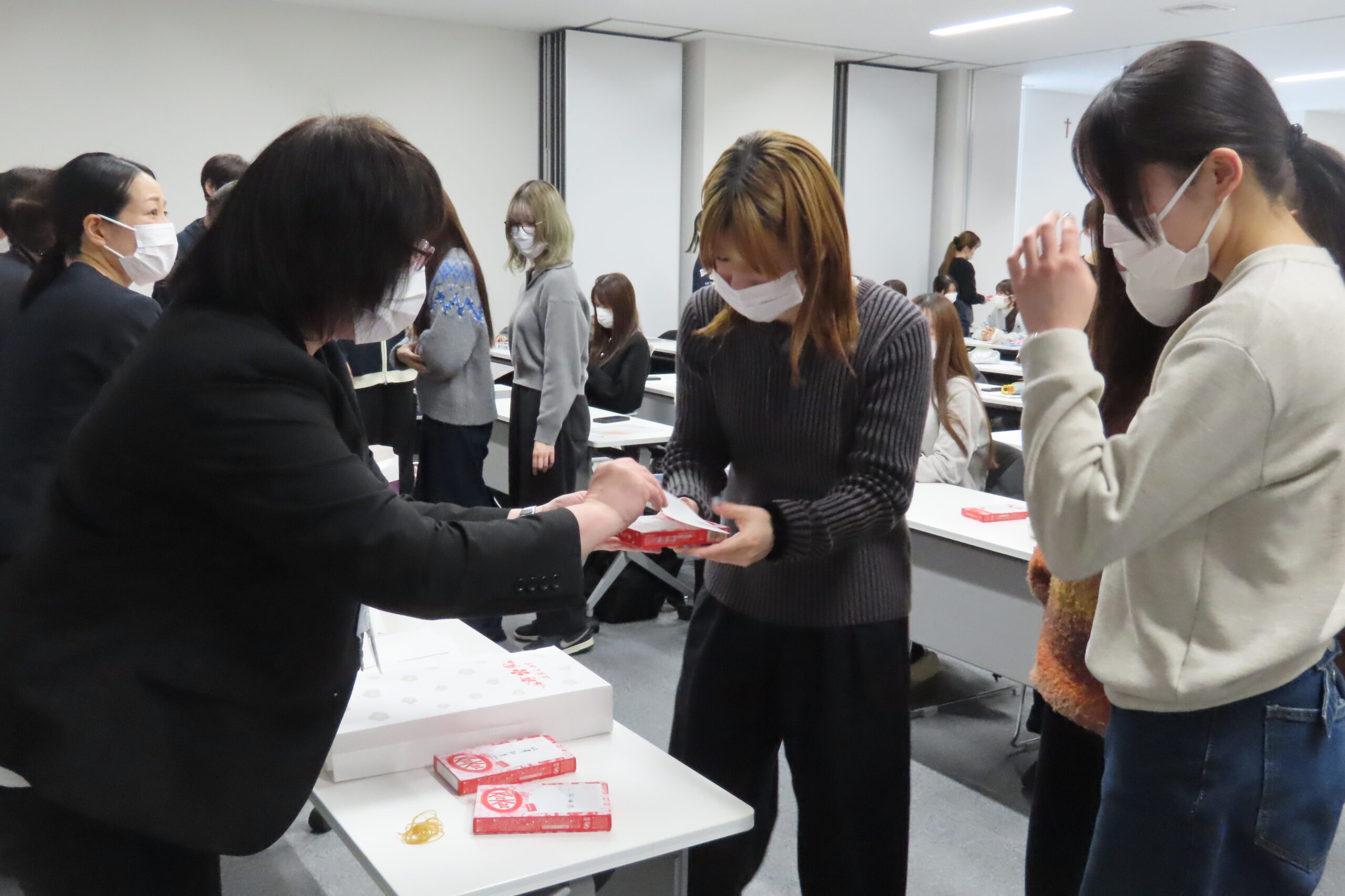 ゼミ担当教員からのメッセージ付きのチョコレートと、祝福を受けたブレスレットのサプライズプレゼントがありました。