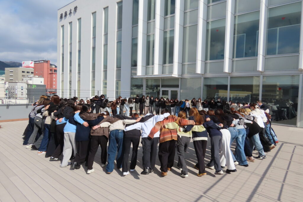 4年生全員で互いの健闘を誓う円陣を組み、国家試験に挑んでいきます。