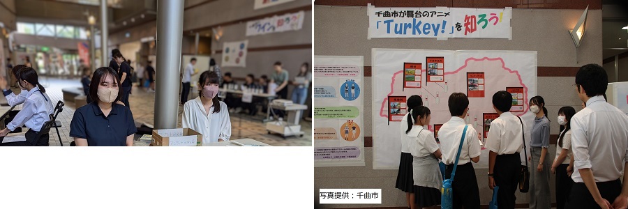 また文化学科川北ゼミの学生も、千曲市舞台のアニメの聖地巡礼マップやアニメのキャラクター紹介図を作成して、来場者にアニメの魅力を伝えました。