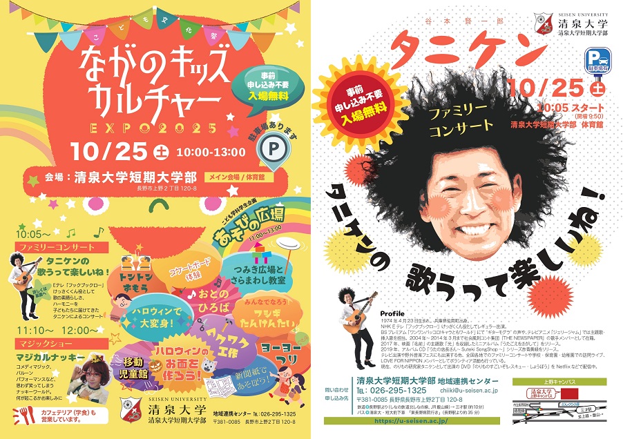 10月25日土曜日上野キャンパスにて「こども文化祭 ながのキッズカルチャ―EXPO2025 」を開催します。