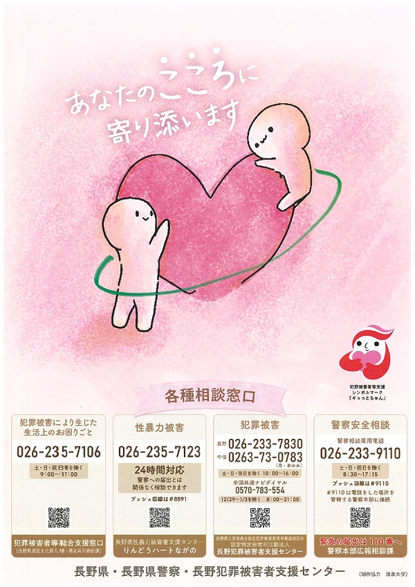 長野県警察と長野県、認定NPO法人長野犯罪被害者支援センター(長野市)が共同で制作するポスターに人間学部3年小野塚美紅さんの作品が採用されました。