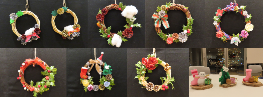 学生相談室では、例年、春学期と秋学期に希望者参加のイベントを企画しています。今年度も、春学期のイベント「ハーバリウムを作ろう」に続き、秋学期イベント「クリスマスリースを作ろう」を12月初旬に(上野キャンパス、東口キャンパス)計画し、合計18名の学生さんに申し込みいただきました。