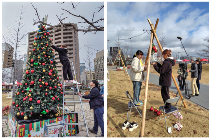 今年も短期大学部幼児教育科の樽井卒研セミナーの学生が、12月9日(火)に長野駅東口公園会場のメインツリーやランタンの飾りつけをいたしました。
