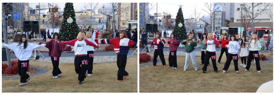 12月14日(日)には、メイン会場の長野駅東口公園で中村卒研セミナー・ダンスサークルによるパフォーマンスが行われ、来場者をくぎ付けにしてクリスマスに笑顔の花を添えました。