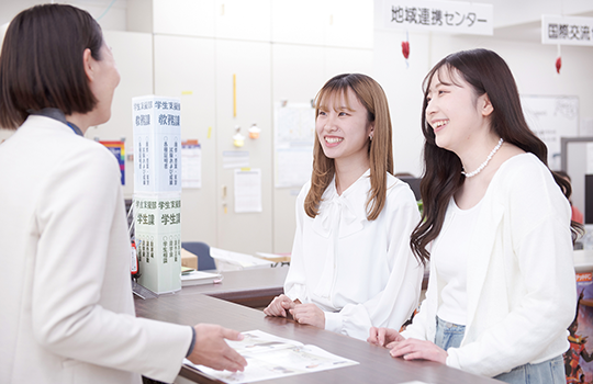 履修登録や休講・補講などの学習に関するサポートはもちろん、各種届け出や証明書の発行など学生生活のサポートを行います。困ったこと、わからない事があったらまず学生支援の窓口へ!